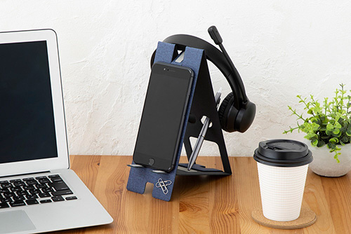 折りたたむと持ち運びできるコンパクトサイズ。充電しながらスマホや小型タブレットが置けます。