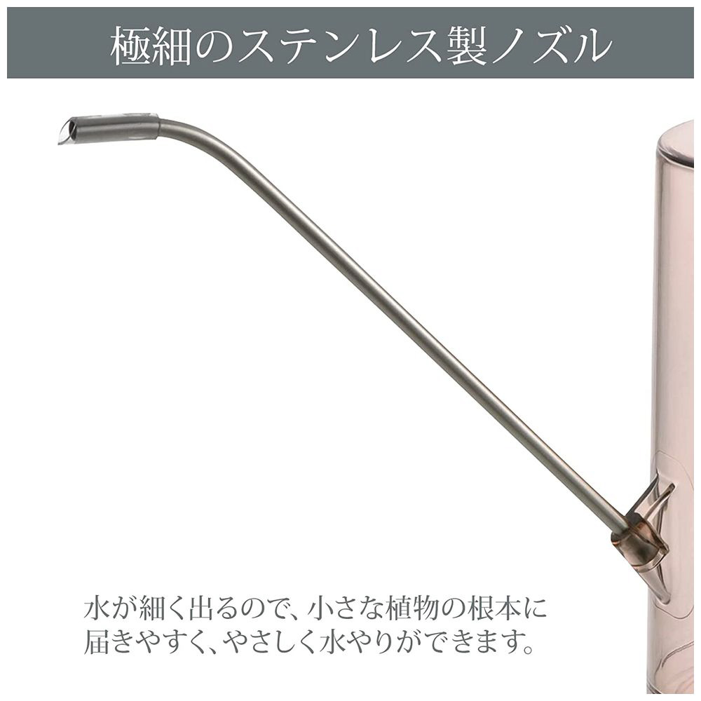 小さなサイズの鉢への水やりもしやすい、細く優しい水流です。