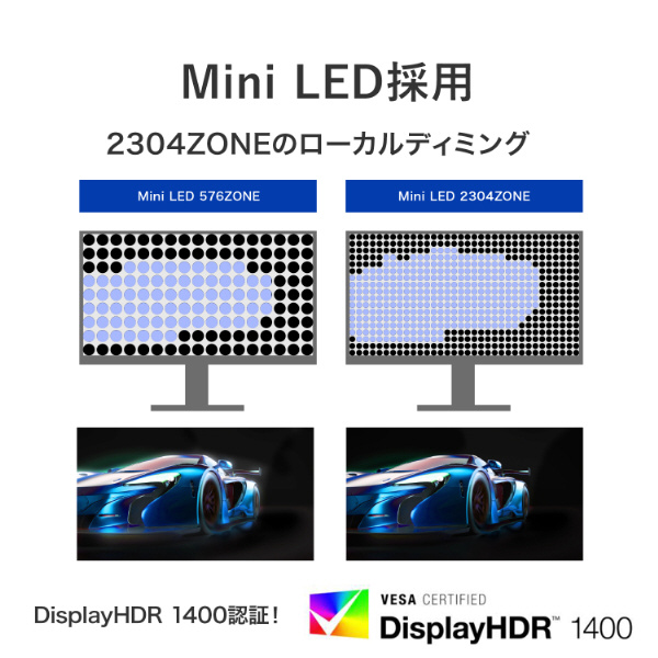 ■Mini LED採用!ローカルディミング&VESA DisplayHDR 1400に対応