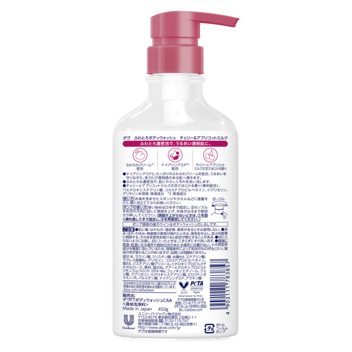 ダヴ ふわとろボディウォッシュ チェリー&アプリコットミルク ポンプ