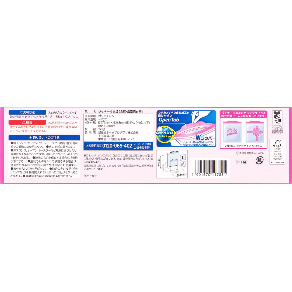 ジップロックRデザインバッグ リボン L26枚入