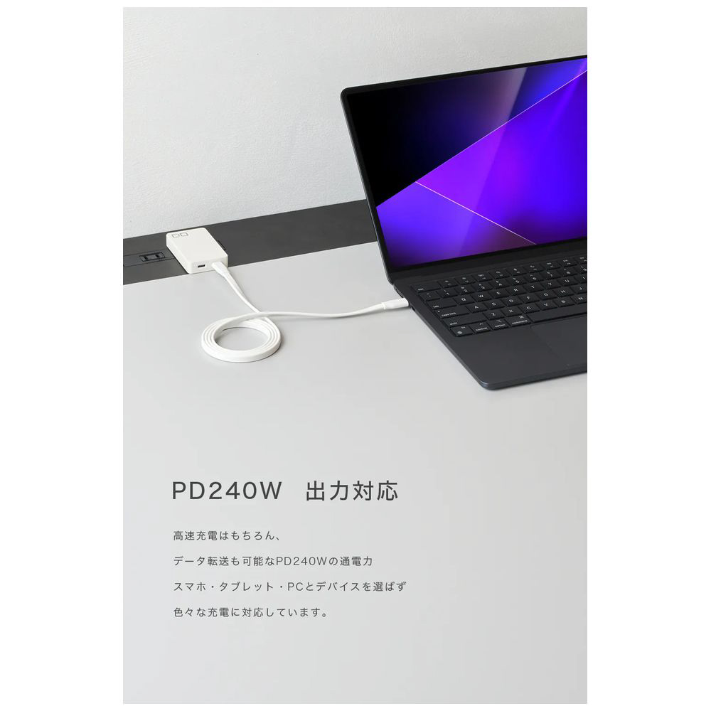 USB PD 3.1規格対応で最大240W給電。MacBook Pro、ゲーミングノートPC、タブレット、スマートフォンまで、PD充電可能なほぼ全てのデバイスを急速充電。1本で複数のデバイスを賄えます。