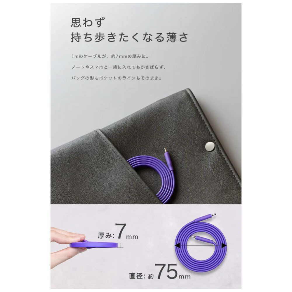 フラット構造と適度なコシを持つTPE+シリコン素材により、ケーブルが自然に整い、巻き取り・収納がスムーズに行える設計となっています。
