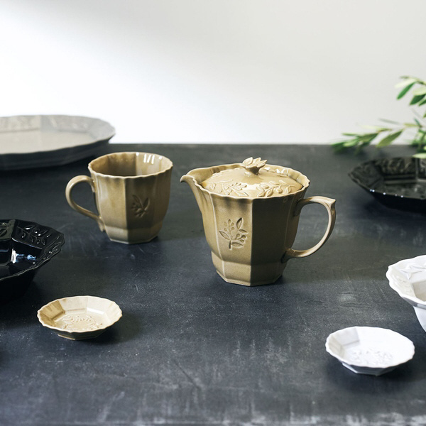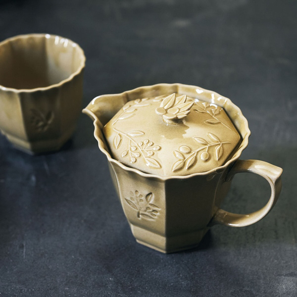 クラシカルなフォルムにオリーブのレリーフが美しい上品なポット。