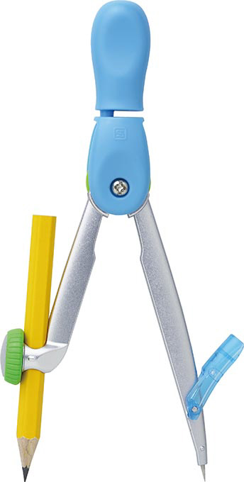 小学生必見!超カンタン 最先端コンパス、特許技術デル・クルヘッドで、つまんで・くるんと・まわすだけ!しっかり線がかける鉛筆タイプ。W針カバーで安心・安全。