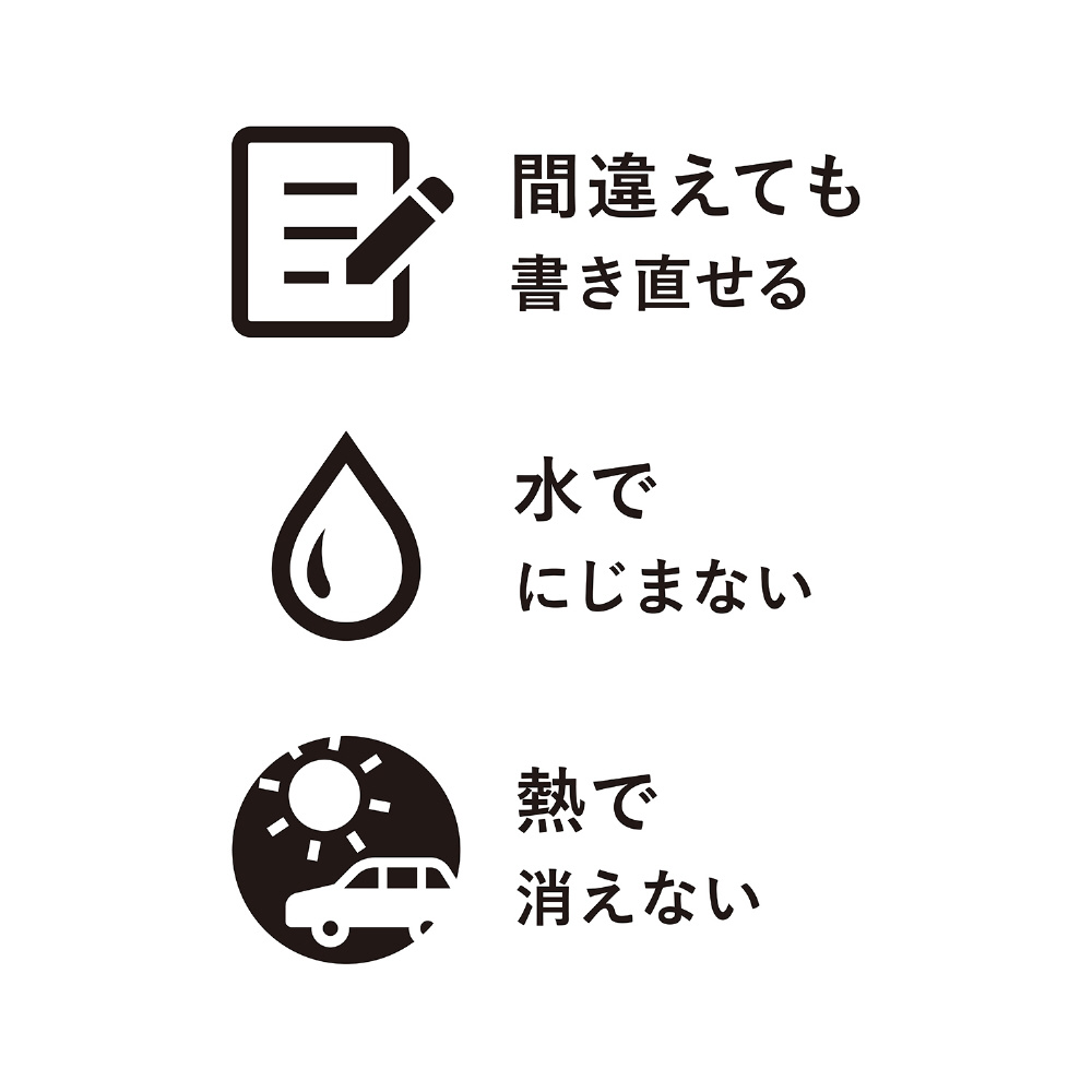 インクを『はがして消す』新発想。“消せる”の常識を変える新技術!文具メーカー3社(プラス株式会社、ぺんてる株式会社、セーラー万年筆株式会社)共同開発のインク「Que Sera」を搭載した、これまでにない“はがして消せる”ボールペン。手帳や日記、子どもの連絡帳など、間違えても専用消し具できちんと消して書き直せるから、書くことがもっと自由に楽しくなる。新発想のインクが実現した、新しいスタイルのボールペンです。