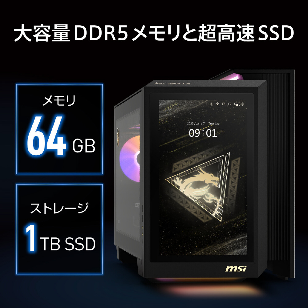 MEG Vision X AI 2NVV7-281JP ゲーミングデスクトップパソコン (RTX 5080) [モニター無し /Windows11 Pro /intel Core Ultra 7 /メモリ:64GB /SSD:1TB /無し /2026年2月モデル]