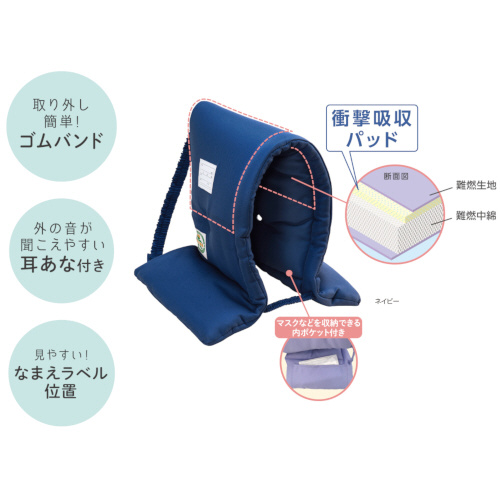 防災ずきん 衝撃吸収パッド入り ネイビー