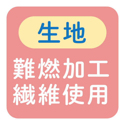 ・生地は難燃加工繊維使用。中綿は燃えにくい素材を使用しています。