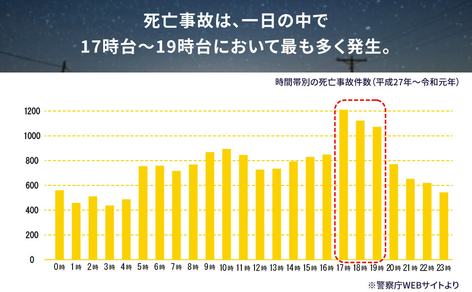 夜間や夕暮れ時の交通死亡事故の対策に!