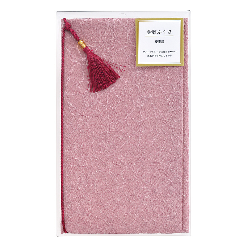 フォーマルシーンに合わせやすい洋風タイプのふくさです。ジャガード織で織られた光沢のある花柄の生地を使用していますので、エレガントで高級感のある仕上りです。また、取り外しの出来るタッセルパーツを付けることで、華やかさをさらにプラス。かたい芯を入れないソフトタイプなので、ご使用後折り畳んで小さな鞄などに収納していただけます。