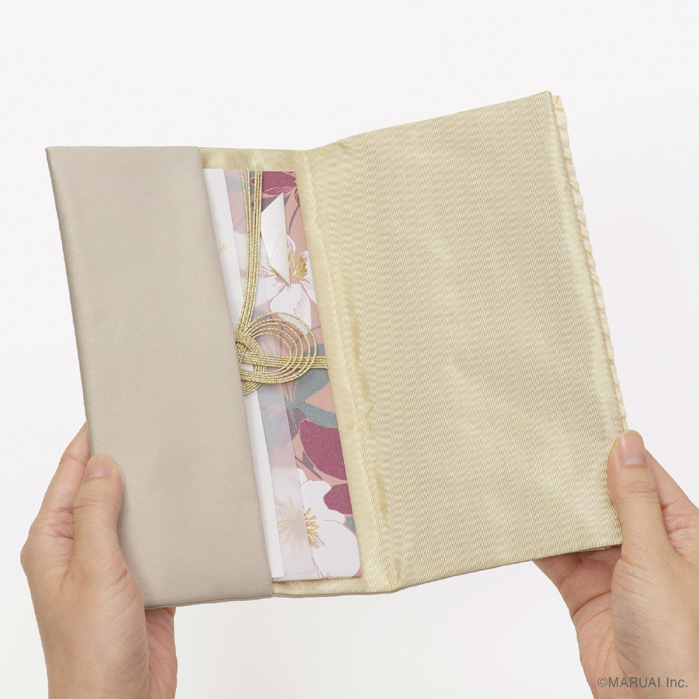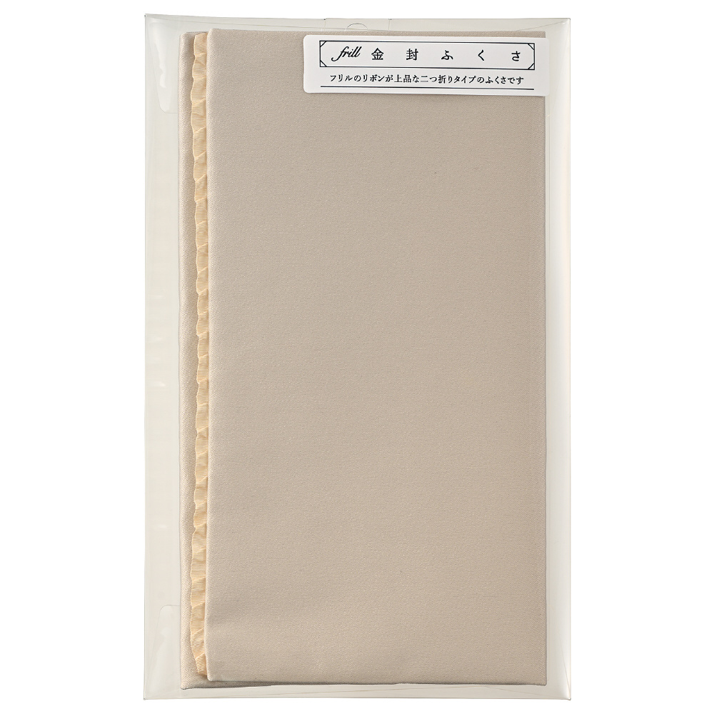 フリルのリボンが上品な二つ折りタイプの金封ふくさ。落ち着いたマット生地のデザインがフォーマルなシーンにお使い頂けます。ポケットに差し込んで使用するタイプです。使い終わった後は、小さめのバッグに入れて持ち歩けます。慶事用。