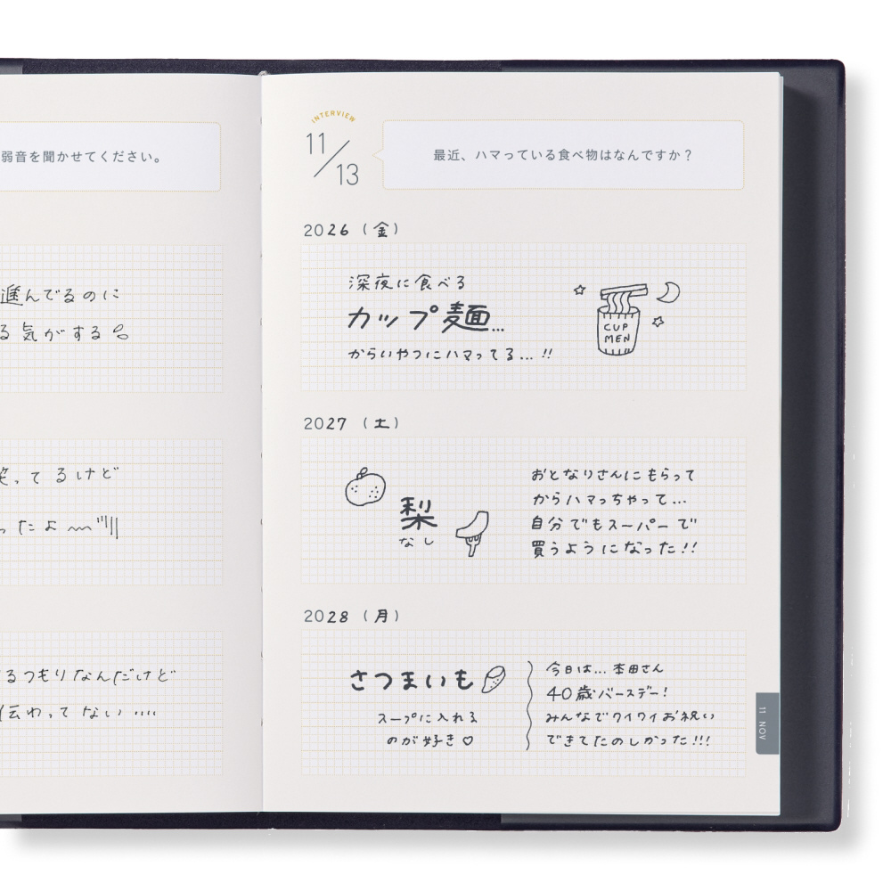 質問に答えていくだけで、いまの自分を記録できるインタビュー形式の連用日記。
