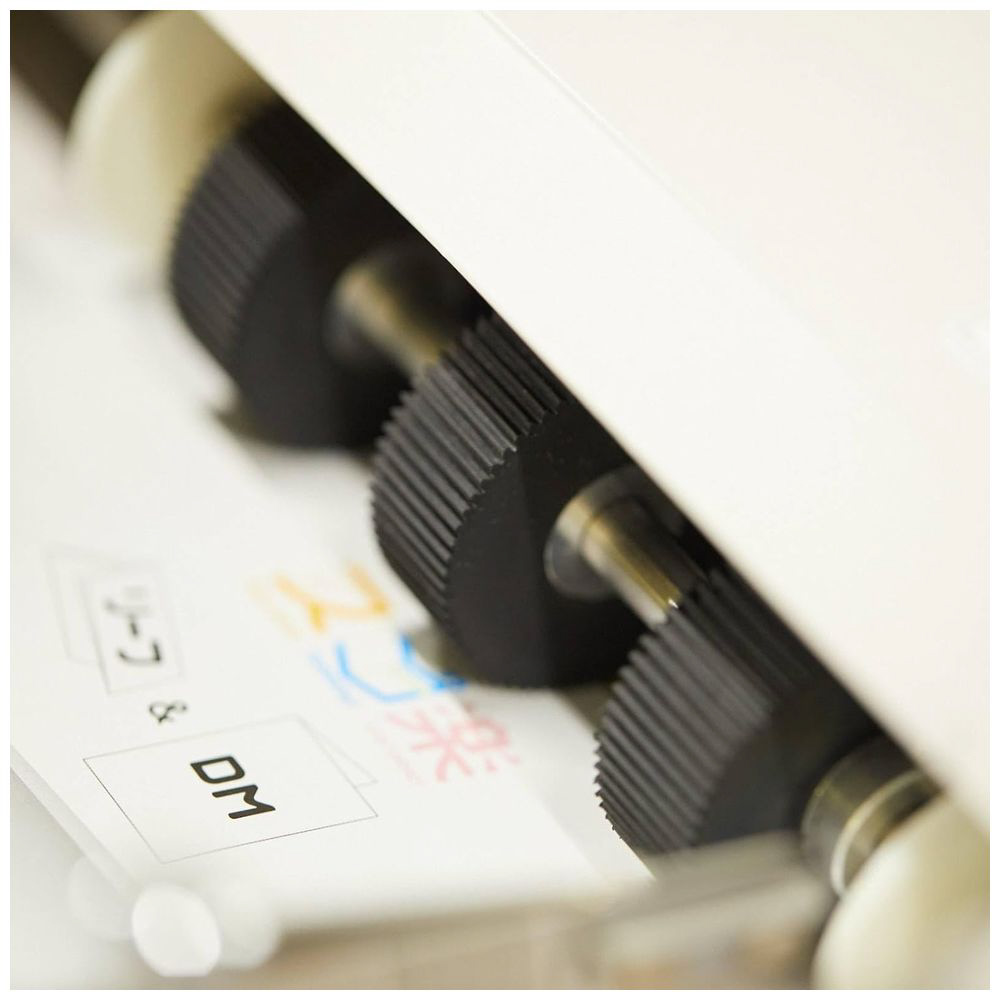 一般的な広告チラシなどに多く使われているコート紙にも対応しているので、リーフレットや DM の紙折りに最適です。