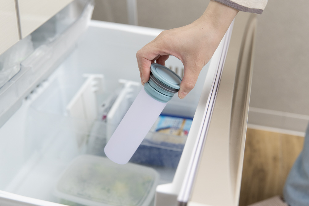 ■シリコーン製氷のう+まほうびん構造のホルダーで冷たさ長持ち。■冷たさキープホルダーに氷のうを入れて持ち運ぶことで外気の熱を遮断し、氷嚢の冷たさが長続きします。