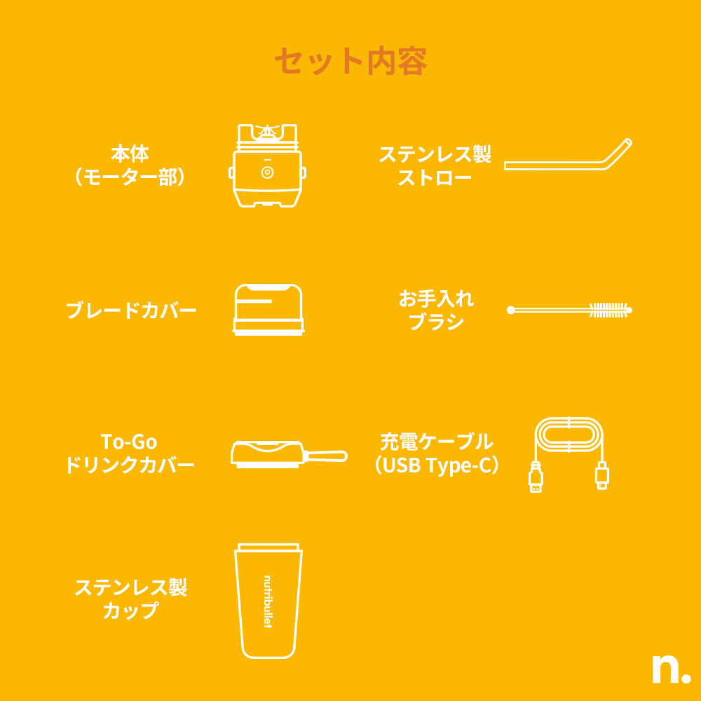 付属品 ・ストロー ・お手入れブラシ ・ブレードカバー ・To-Go ドリンクカバー