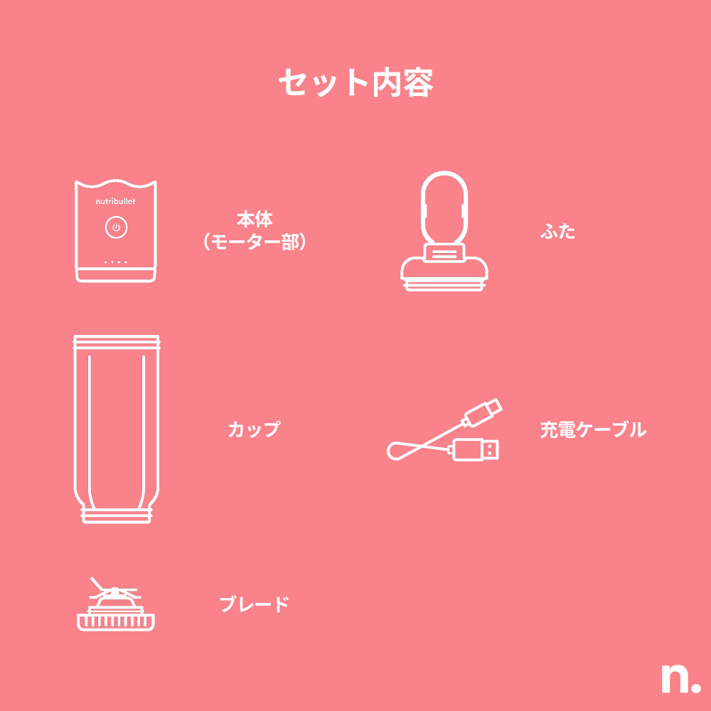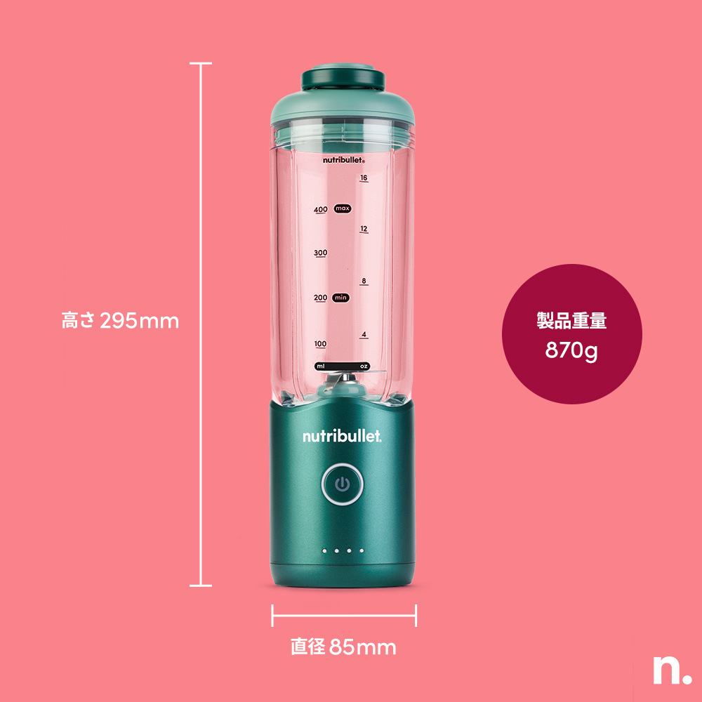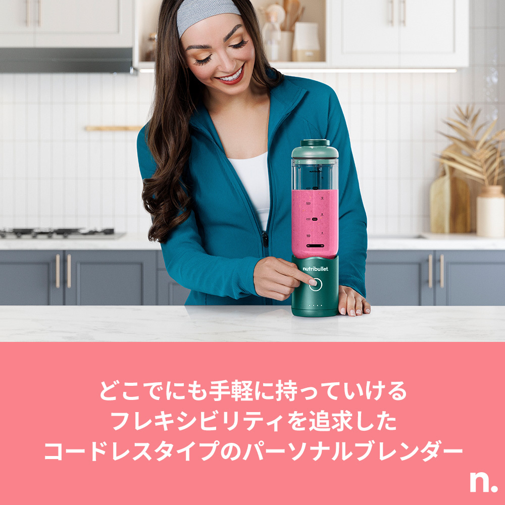 どこにでも手軽に持っていけるフレキシビリティを追求した、軽量かつパワフルなコードレスタイプのパーソナルブレンダー*1 コンパクトなのに、nutribulletならではの滑らかに仕上がる美味しさ。 キッチンでも、アウトドアでも、オフィスでも自由に使える。 自分にあった色が選べるポップなカラーモデル。毎日のインナーケアのサポートに。*1 パーソナルブレンダー:容量0.6L以下のミキサー/ブレンダー