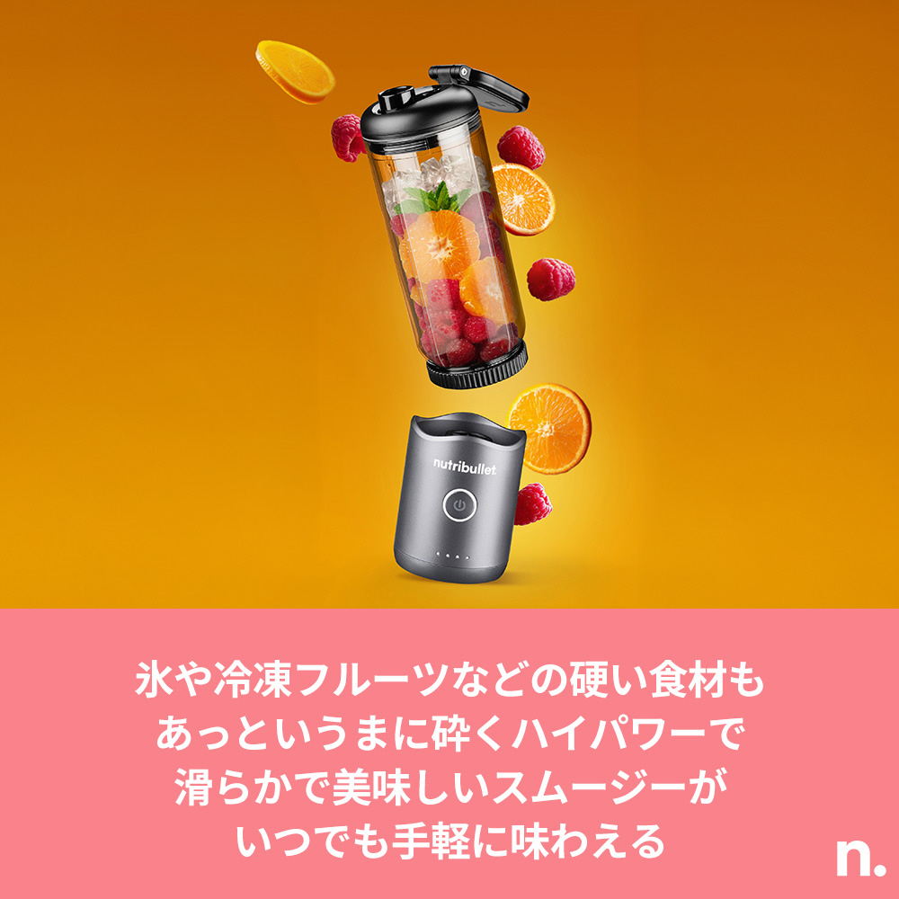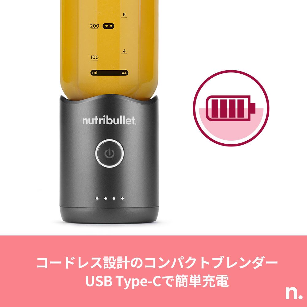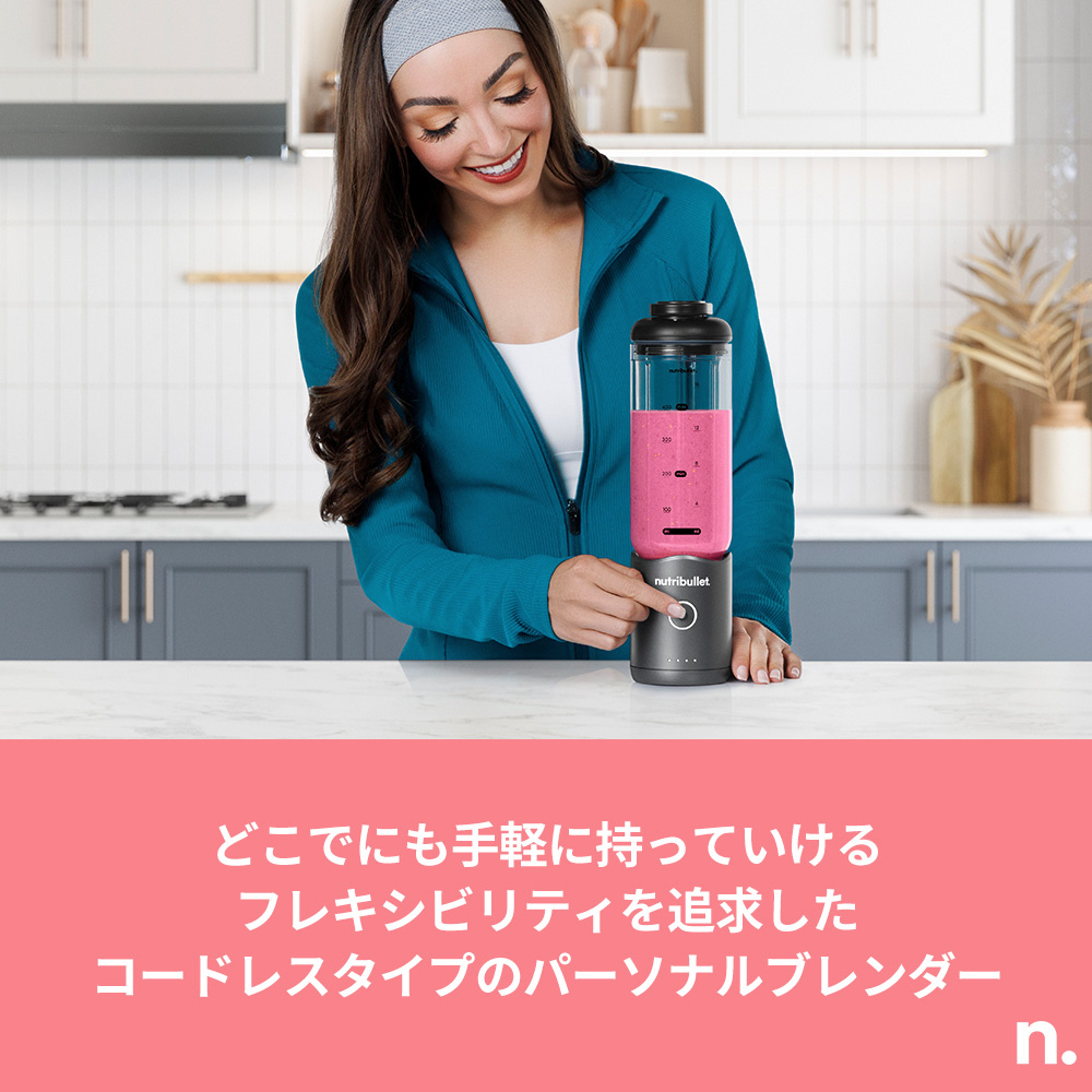 どこにでも手軽に持っていけるフレキシビリティを追求した、軽量かつパワフルなコードレスタイプのパーソナルブレンダー*1 コンパクトなのに、nutribulletならではの滑らかに仕上がる美味しさ。 キッチンでも、アウトドアでも、オフィスでも自由に使える。 自分にあった色が選べるポップなカラーモデル。毎日のインナーケアのサポートに。*1 パーソナルブレンダー:容量0.6L以下のミキサー/ブレンダー