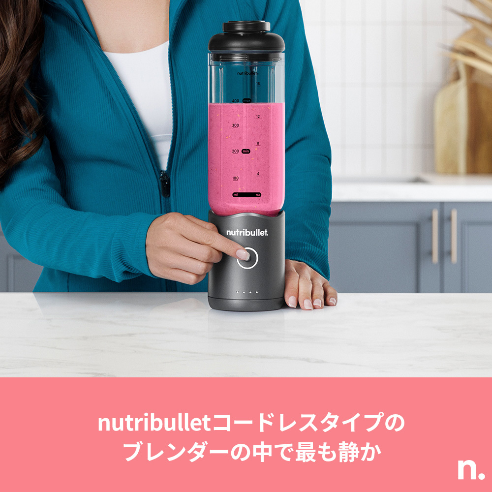 nutribulletコードレスタイプのブレンダーの中で最も静かで、場所を問わずに使える。*自社製品ラインナップの中で最も静音設計