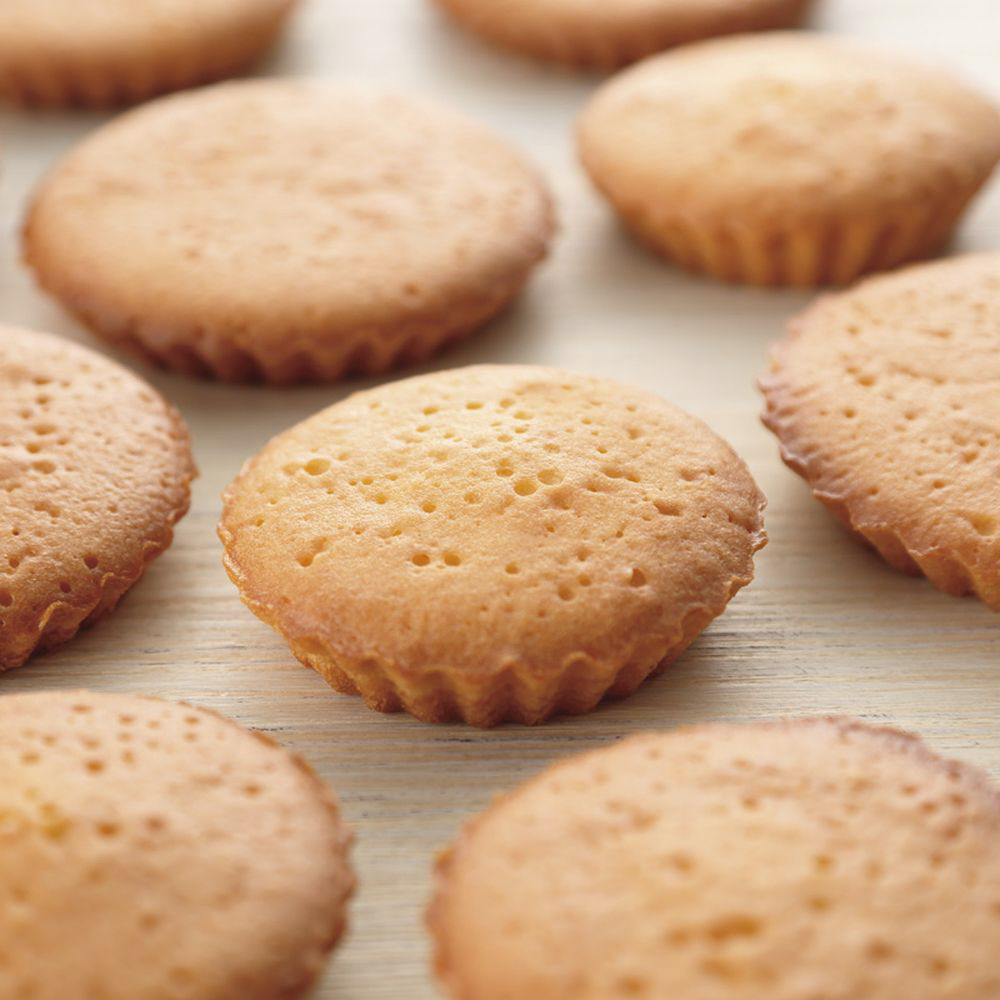 油なしでも型ばなれしやすいマドレーヌ敷紙です。紙を敷いた型に8分目ほど生地を流し込むことで、焼き上がったマドレーヌが型から取り出しやすくなります。