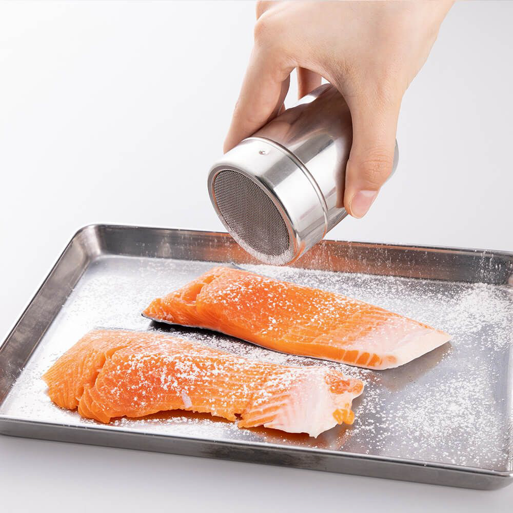片手でサッと使うことができる、ハンディ粉ふるい。クッキーの打ち粉など少量だけ使いたい時に、片手でサッと使うことができます。お菓子作りだけでなく、お料理のシーンでも大活躍。お魚・お肉にも満遍なく粉をまぶすことができます。フタ付きなので、中身が余っても保存が可能。食洗機可能なので、お手入れしやすく清潔にお使いいただけます。