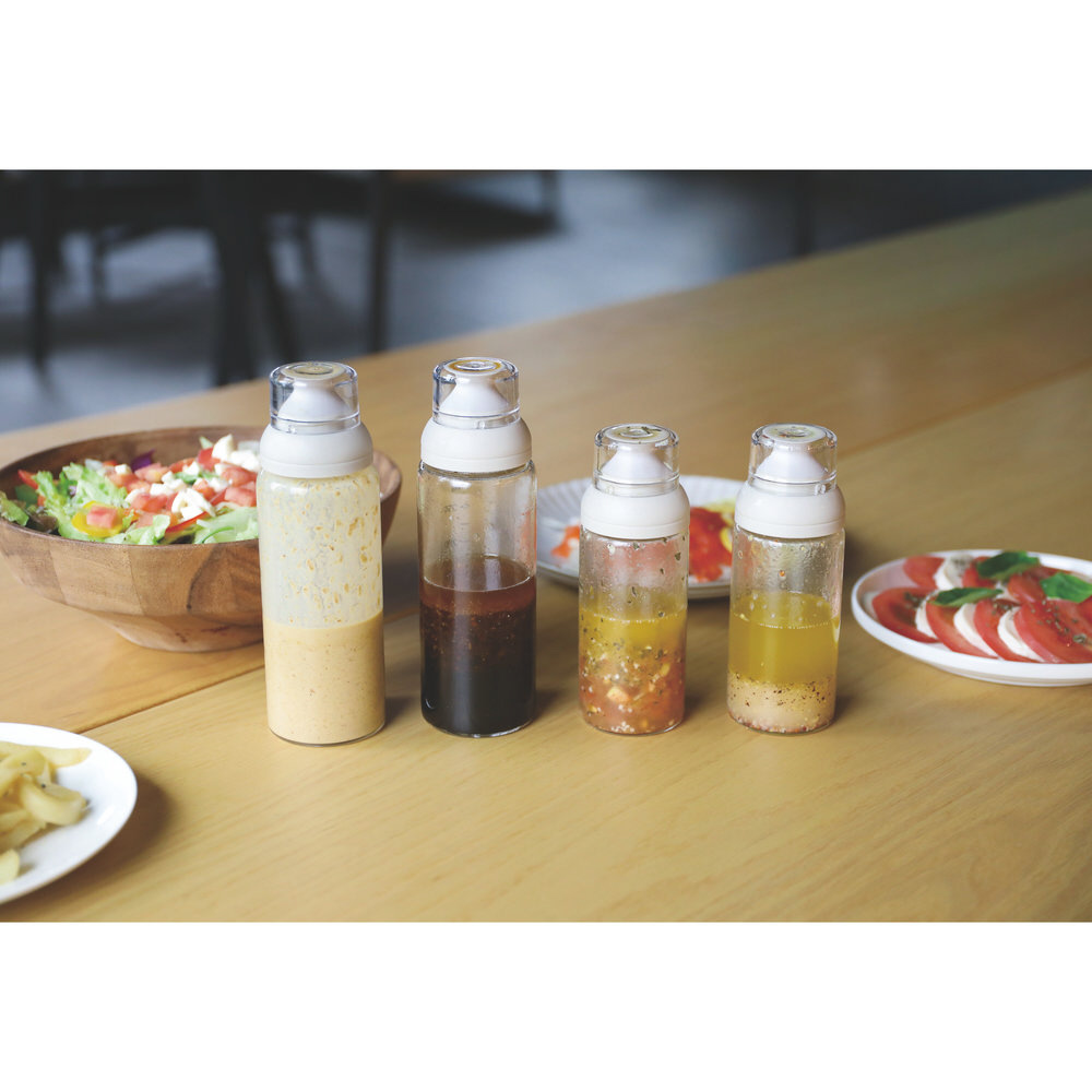 中身の色合いが見えるので、作る工程や完成したドレッシングの美しさも楽しめます。