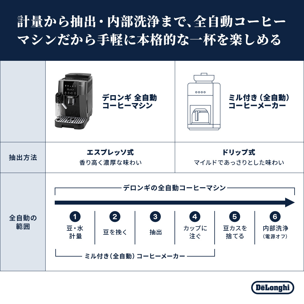 (豆・水の計量から豆挽き〜抽出、内部洗浄まで全て自動)