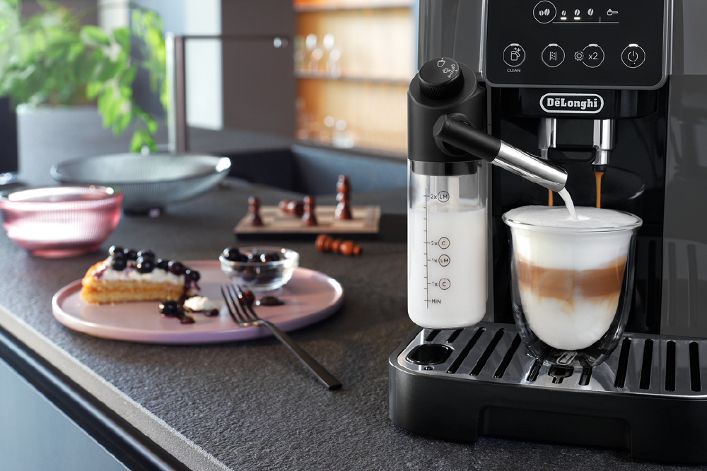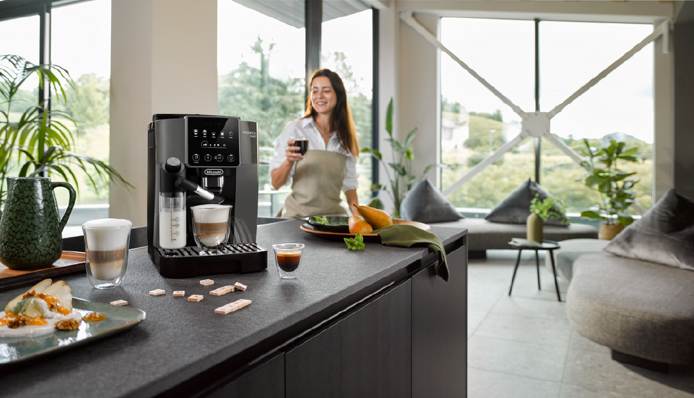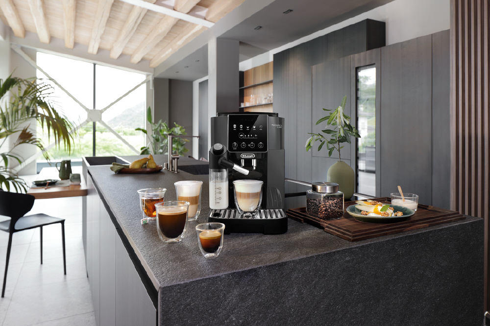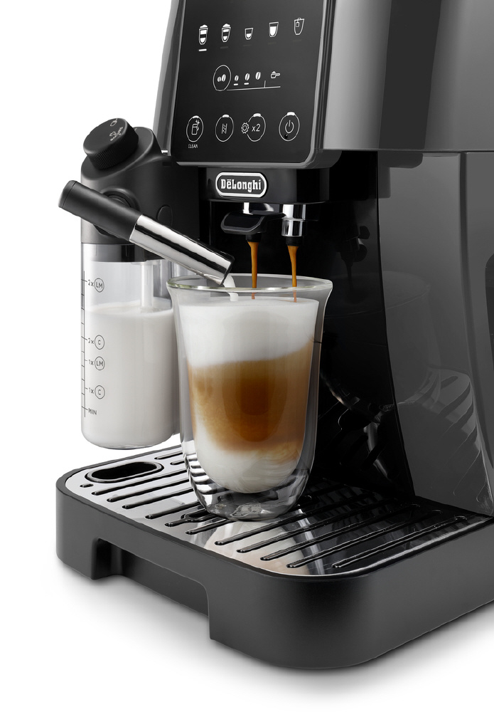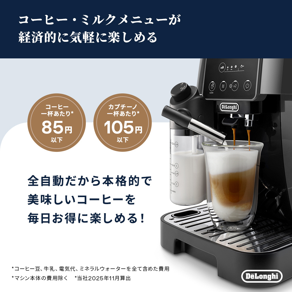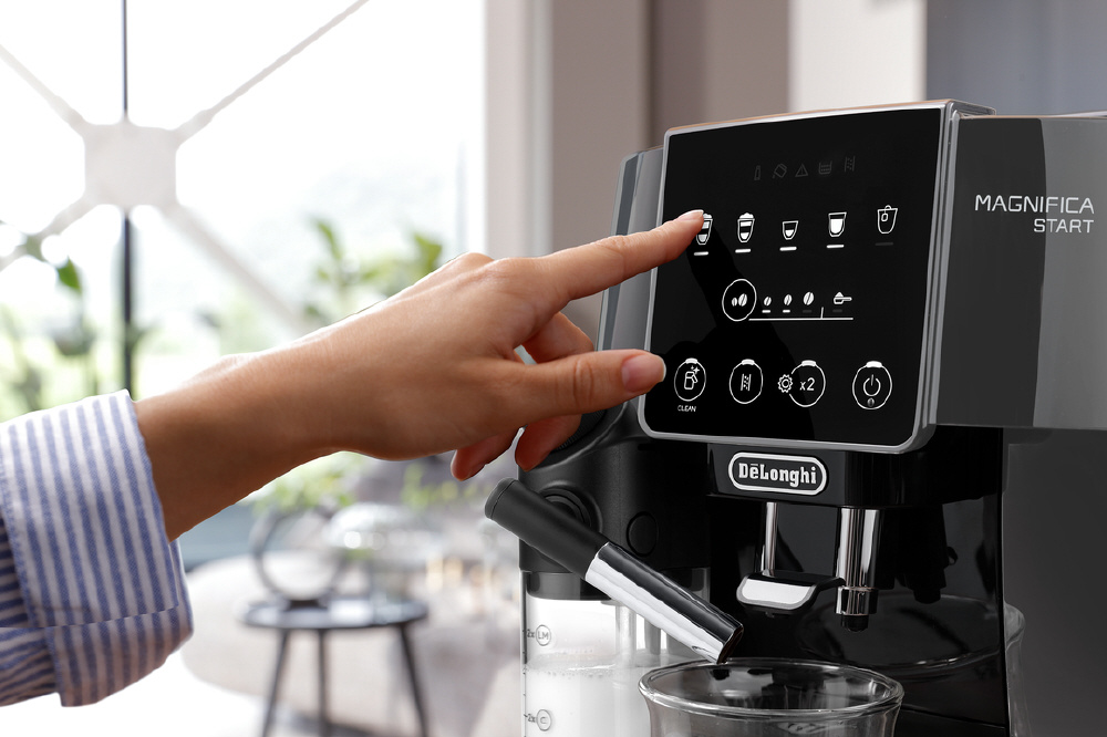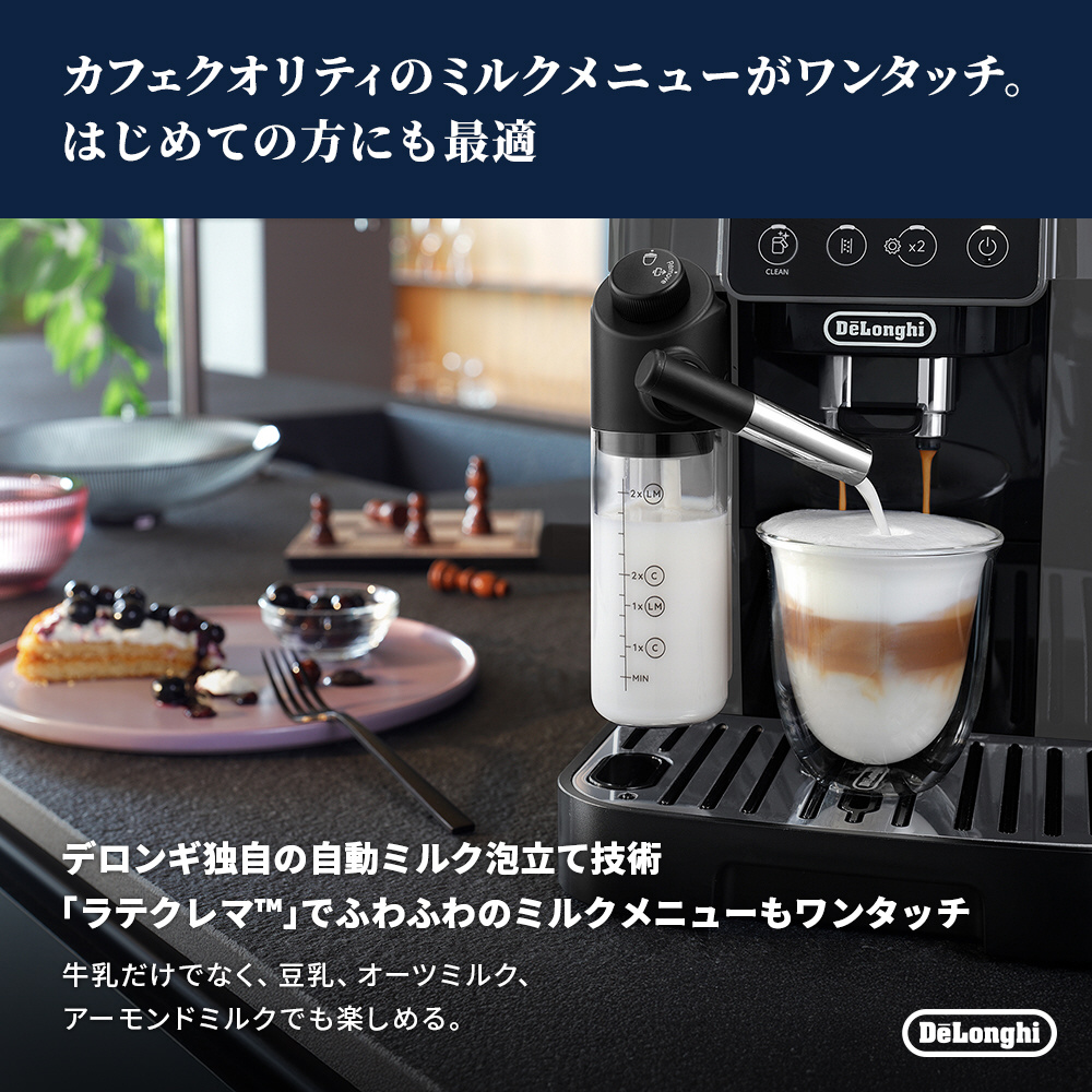 ボタンをタッチだけで挽きたて、淹れたての本格カフェメニューが楽しめるデロンギ全自動コーヒーマシン。