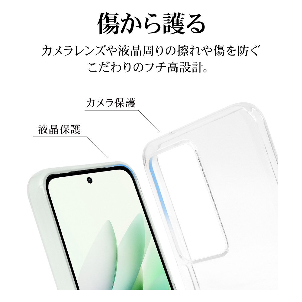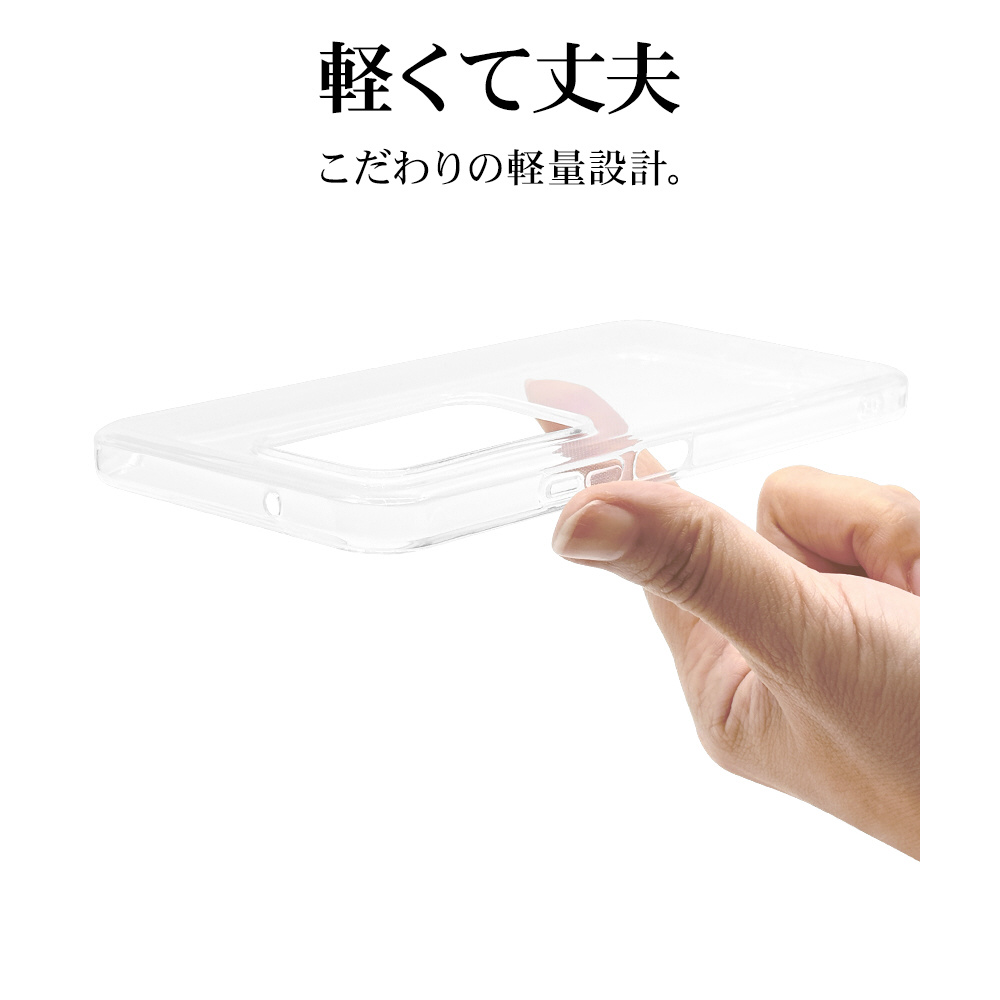 ●滑りにくくしなやかな耐衝撃性のあるTPU素材で、側面と背面をしっかりカバーし優しく端末を守ります。※衝撃吸収については、一般的なポリカーボネート製ケースと比較した自社検証結果で、無破損、無故障を保証するものではありません。
