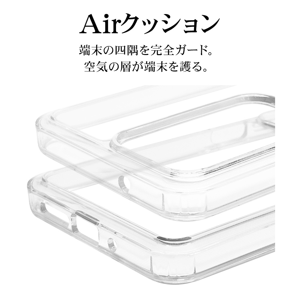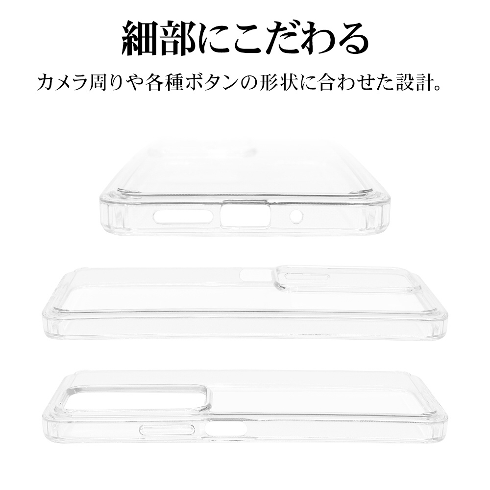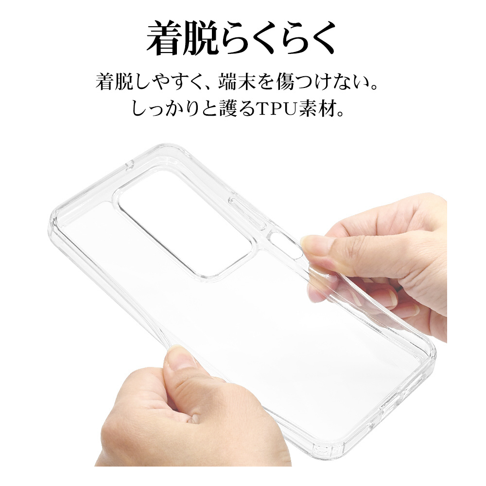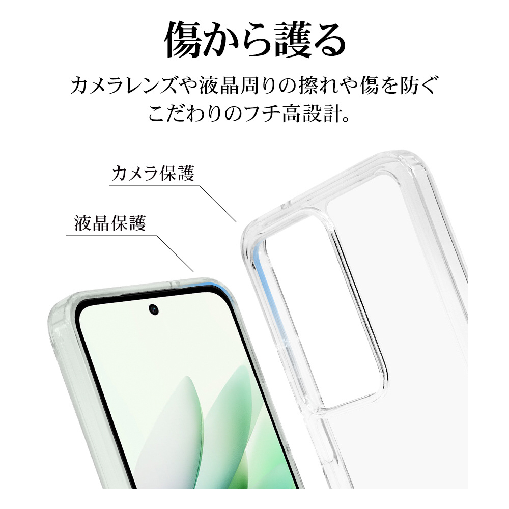 ●側面は弾力と柔軟性を兼ね備えたTPU素材で端末を衝撃から保護。背面は傷に強いポリカーボネート素材を使用しています。※衝撃吸収については、一般的なポリカーボネート製ケースと比較した自社検証結果で、無破損、無故障を保証するものではありません。
