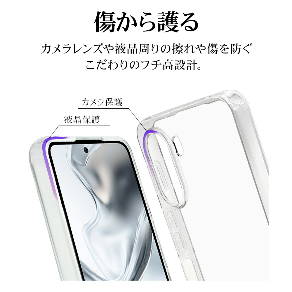 ●滑りにくくしなやかな耐衝撃性のあるTPU素材で、側面と背面をしっかりカバーし優しく端末を守ります。※衝撃吸収については、一般的なポリカーボネート製ケースと比較した自社検証結果で、無破損、無故障を保証するものではありません。