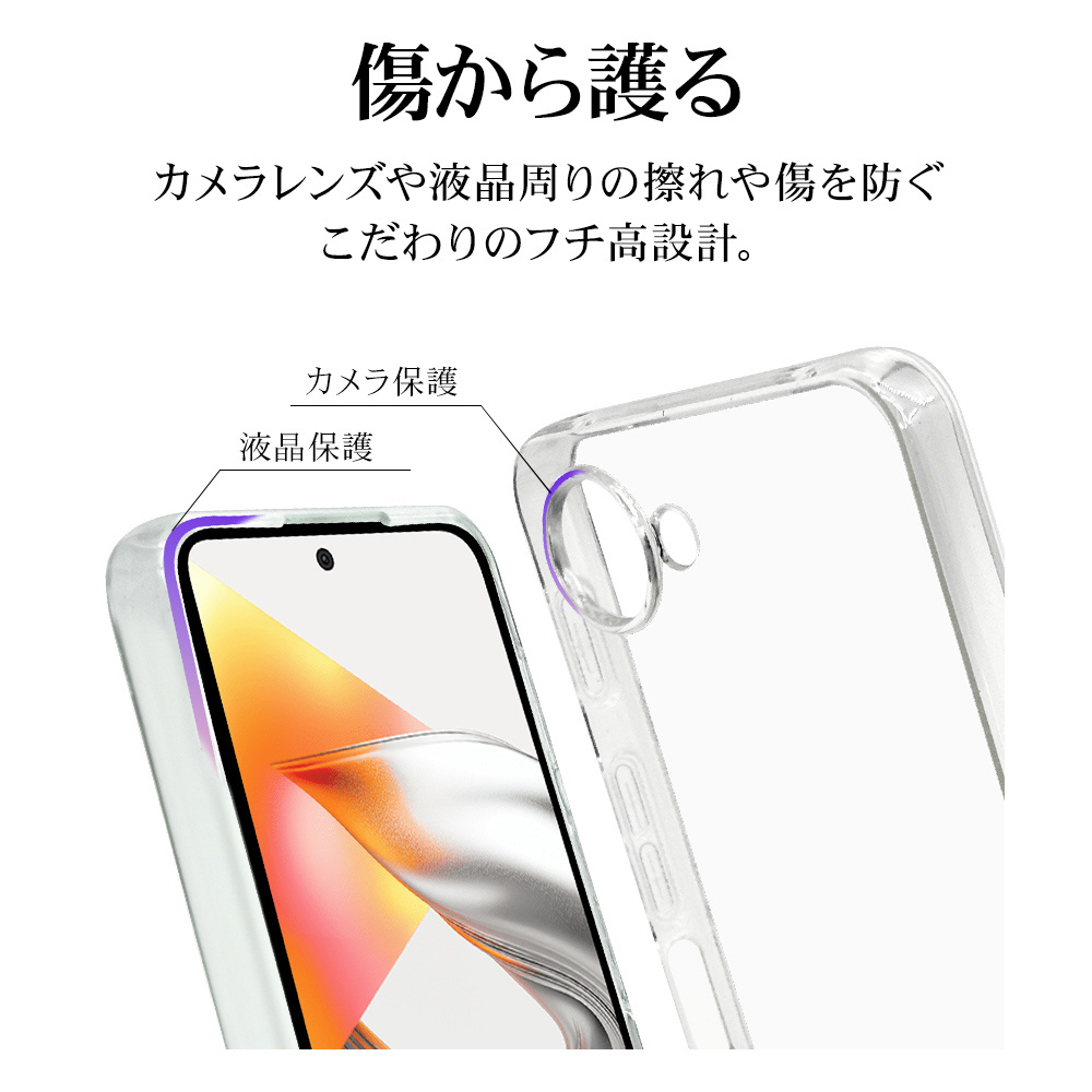 ●滑りにくくしなやかな耐衝撃性のあるTPU素材で、側面と背面をしっかりカバーし優しく端末を守ります。※衝撃吸収については、一般的なポリカーボネート製ケースと比較した自社検証結果で、無破損、無故障を保証するものではありません。