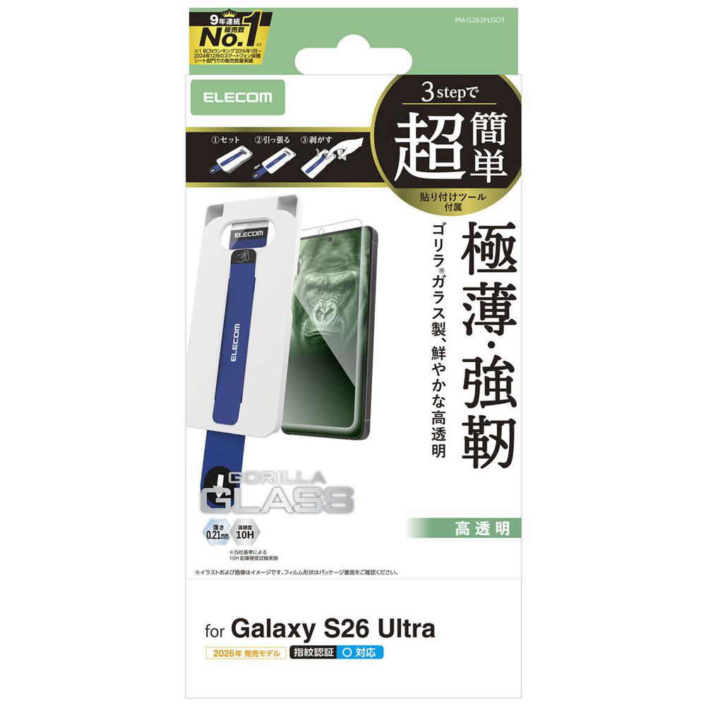 Galaxy S26 Ultra ガラスフィルム/ゴリラ/0.21mm/超簡単貼リ付ケツール