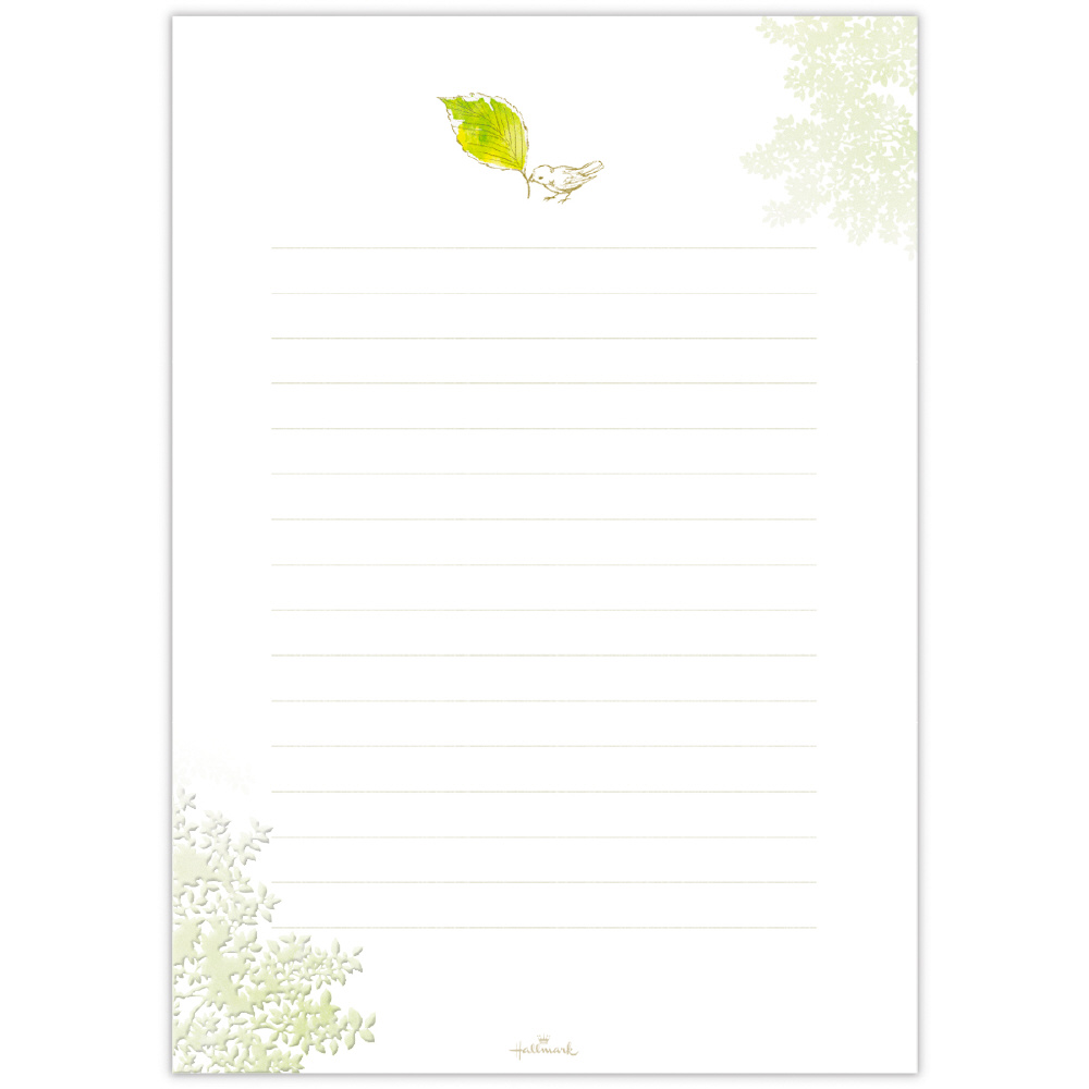 結婚の報告やお世話になった方へのお礼など日常使いとはちょっと違う、かしこまった機会にも、とっておきのお相手へのファンレターにも使えるプレミアムなレターパッドです。みずみずしい木々の中で小鳥が木葉を運んでいる様子を描きました。パールシルクやエンボス加工を施した贅沢な仕上がりをお楽しみいただけます。