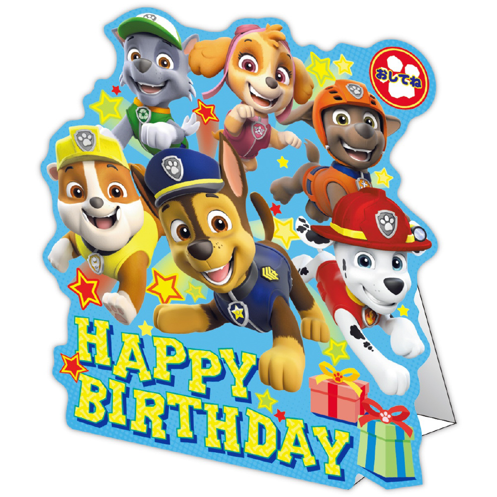リーダーのケントと個性豊かな子犬たちが力を合わせて、さまざまなトラブルを解決する人気アニメ「パウ・パトロール」が、待望の立体カードになって登場! お子さまの誕生お祝いにぴったりです。メインキャラクター・チェイスの録り下ろしボイス入りです。