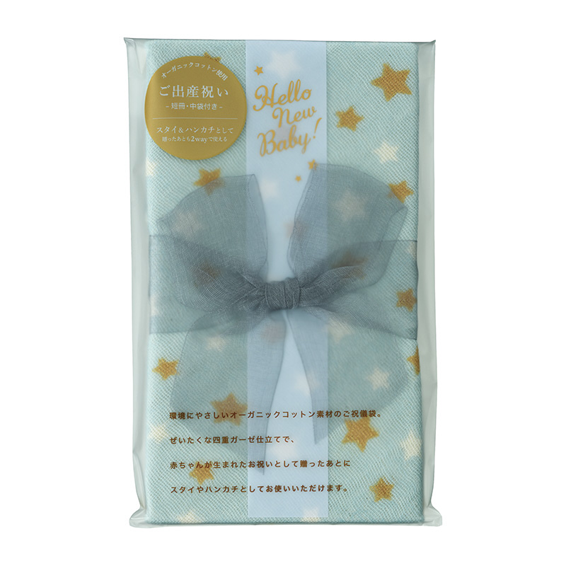 環境にやさしいオーガニックコットン素材のご祝儀袋です。ぜいたくな四重ガーゼ仕立てで、赤ちゃんが生まれたお祝いとして贈ったあとにスタイやハンカチとしてお使いいただけます。