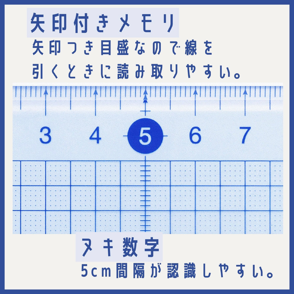 ■矢印付きメモリ:矢印つき目盛なので線を引くときに読み取りやすい。