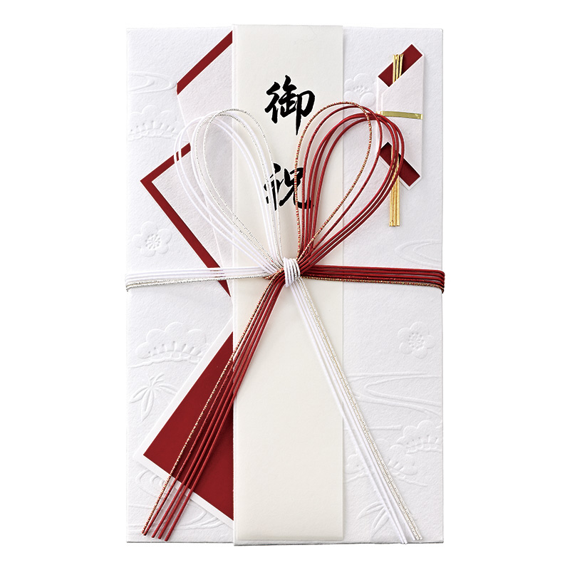 和しぐさ エンボス金封 大判赤白花結