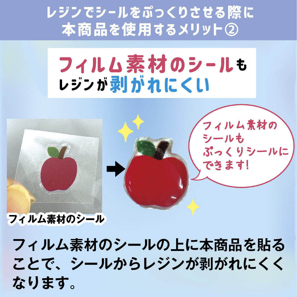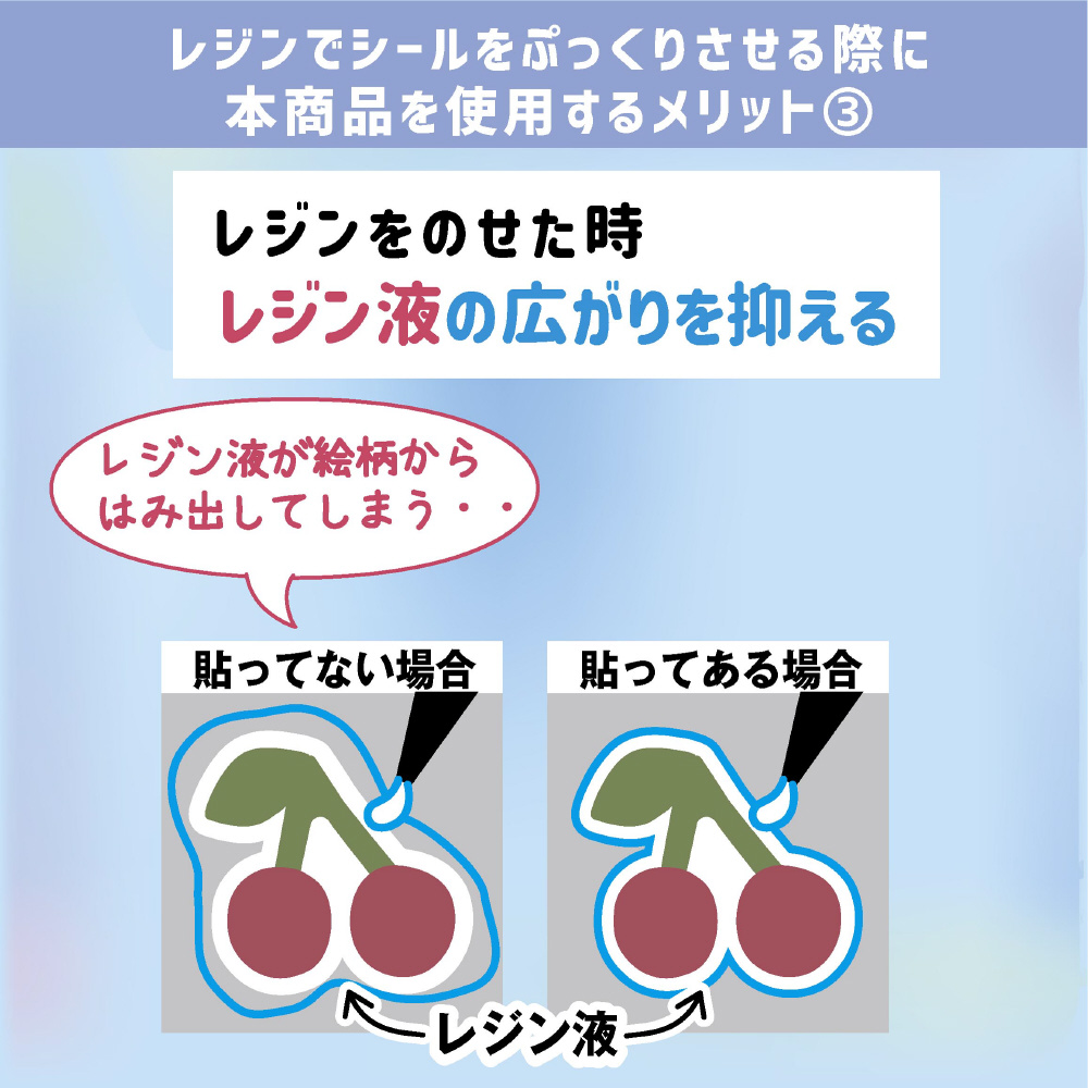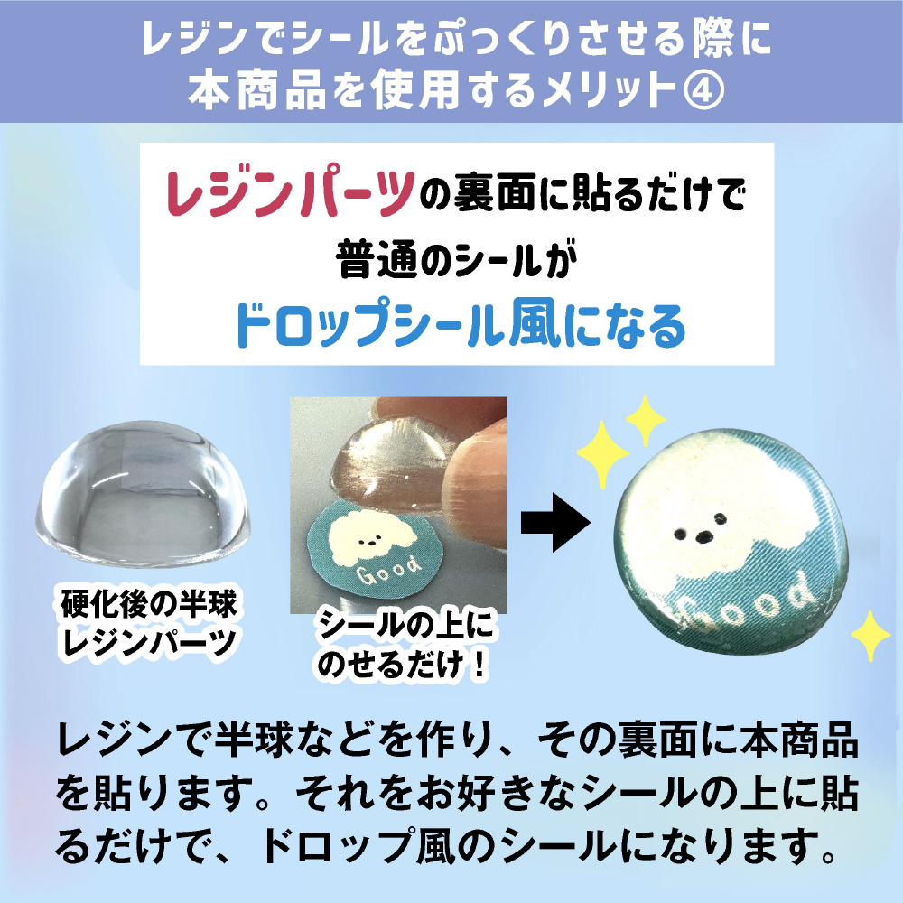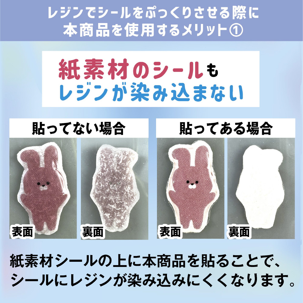 レジンでぷっくりシールを作る際に役立つ、透明でシート状の強粘着タイプの両面シールです。