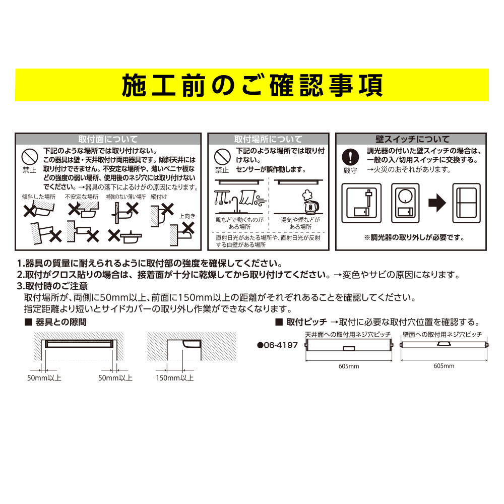 ※ この器具は壁・天井取付け両用器具です。傾斜天井には取り付けできません。