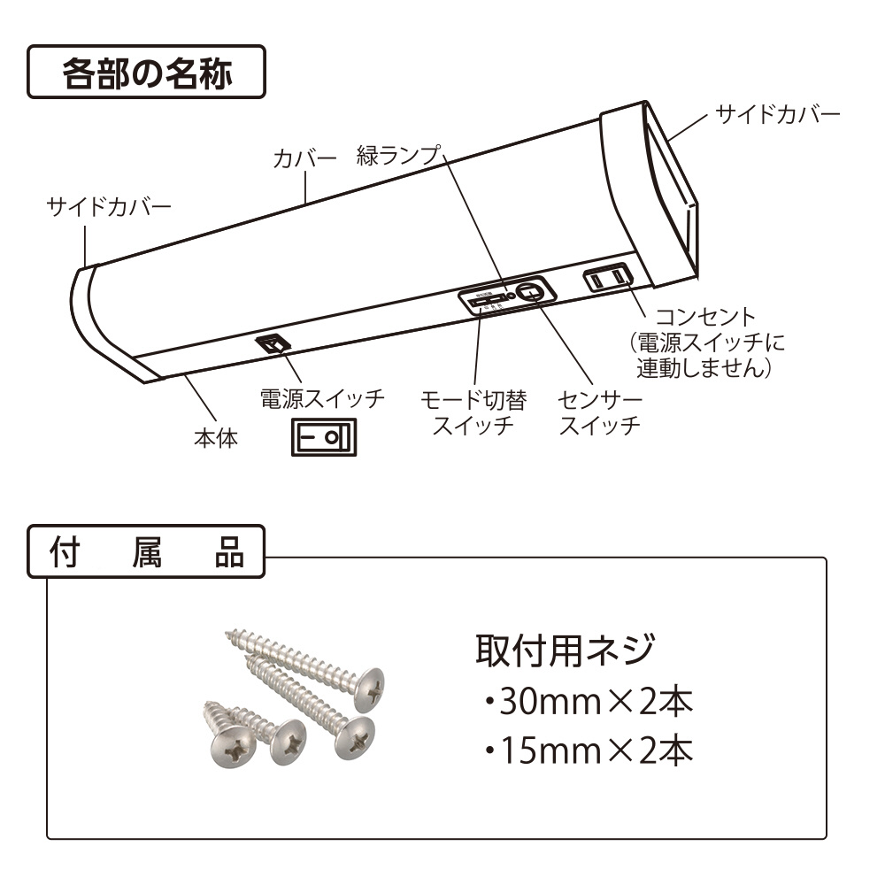 ■ 付属品:取付用ネジ(30mm×2本、15mm×2本)
