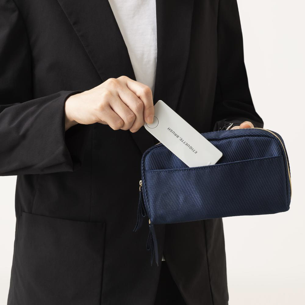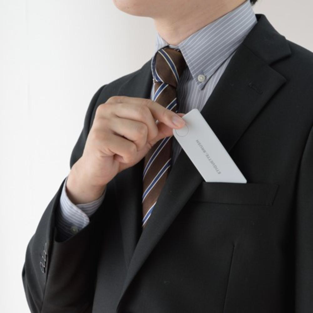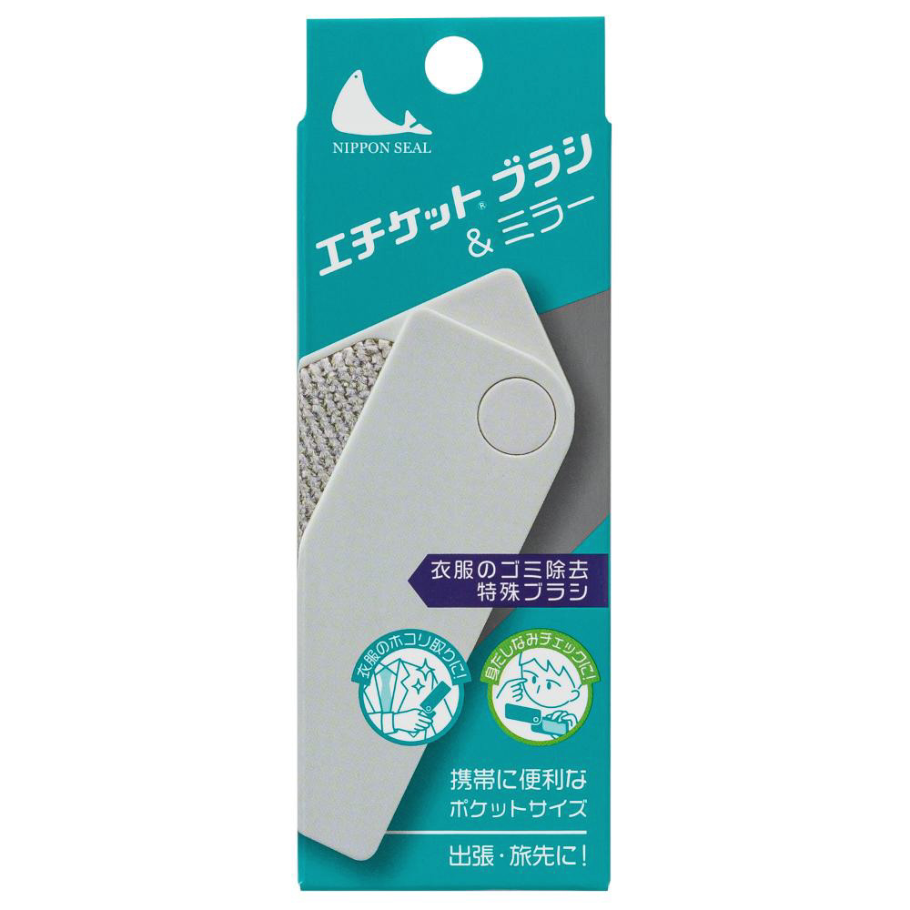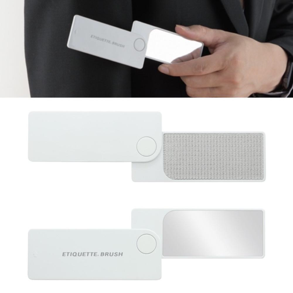 洋服に付いたホコリが取れるミラー付の携帯用ポケットサイズの薄型エチケットブラシです。