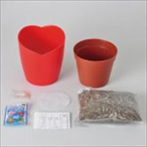 ●種まきから約2?3ヶ月で黄色の小さな花が咲き、そのあとに実ができます。●実がハート型に膨らんで、真っ赤になったらいよいよ収穫。●お料理に使えば、愛情たっぷりメニューに早変わりです。●ハートマト:ハートマトとはぷっくりしたかわいらしいハート型の実をつける品種のミニトマトです。実の大きさは直径約2?3cm。半分に割るとよりハート型がくっきり●セット内容:ハートポット、インナーポット、鉢底シート、培養土、種、説明書、肥料