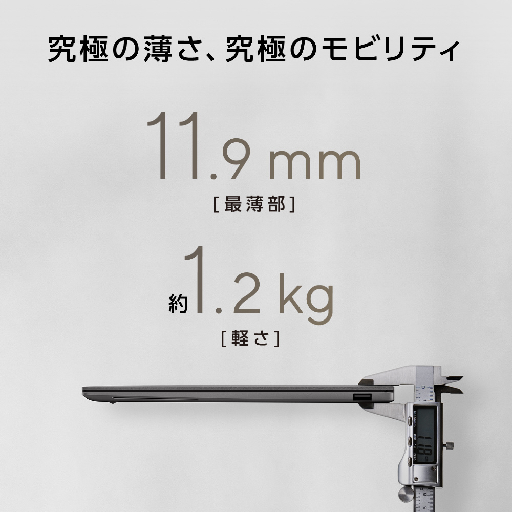驚異の11.9mmの薄さと約1.2kgの軽さを実現。デュアルファン搭載でパフォーマンスも犠牲にすることはありません。高いモビリティ性能で、かつてない生産性と驚きをお届けします。