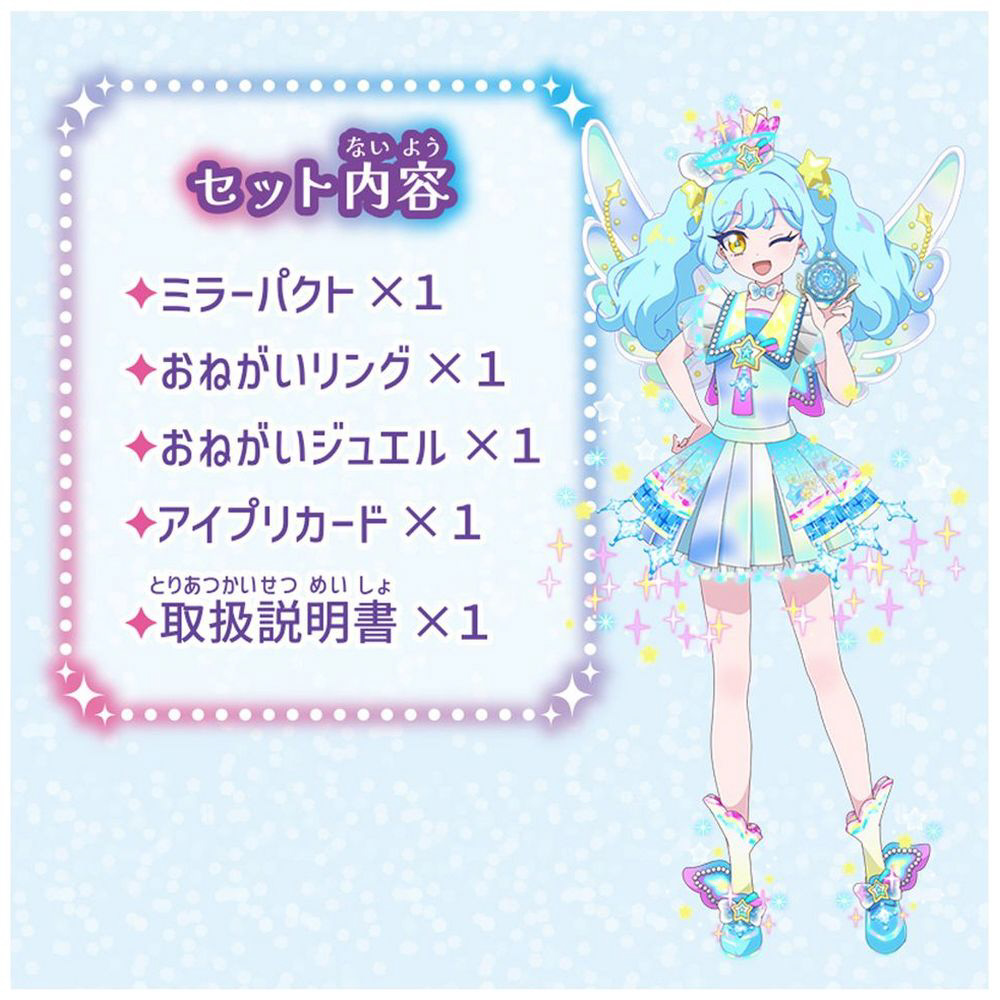 あおいたちとおそろいのミラーパクトとおねがいリングで、アイプリになりきっちゃおう♪アミューズメントゲームでスペシャルライブが楽しめる、アイプリカードつき!