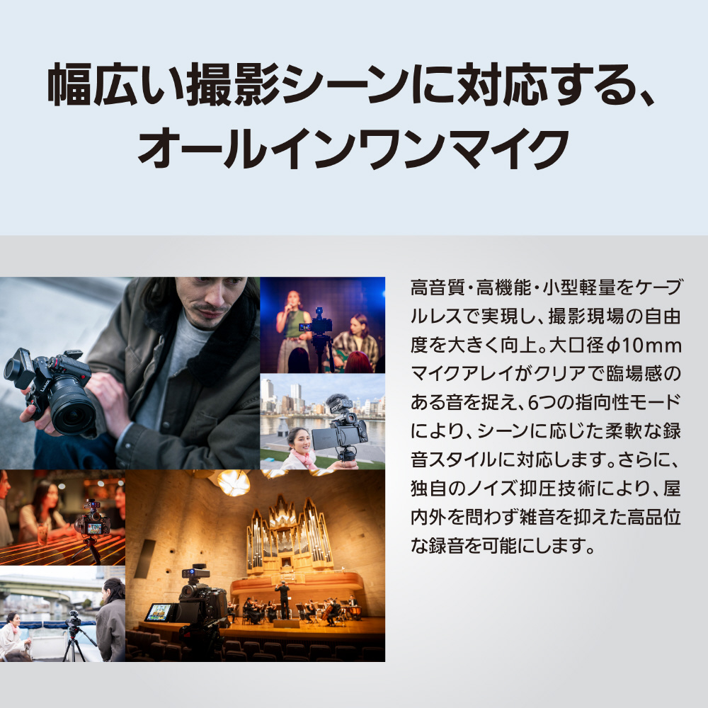 幅広い撮影シーンに対応する、ケーブルレス接続の高音質オールインワン外付けマイク