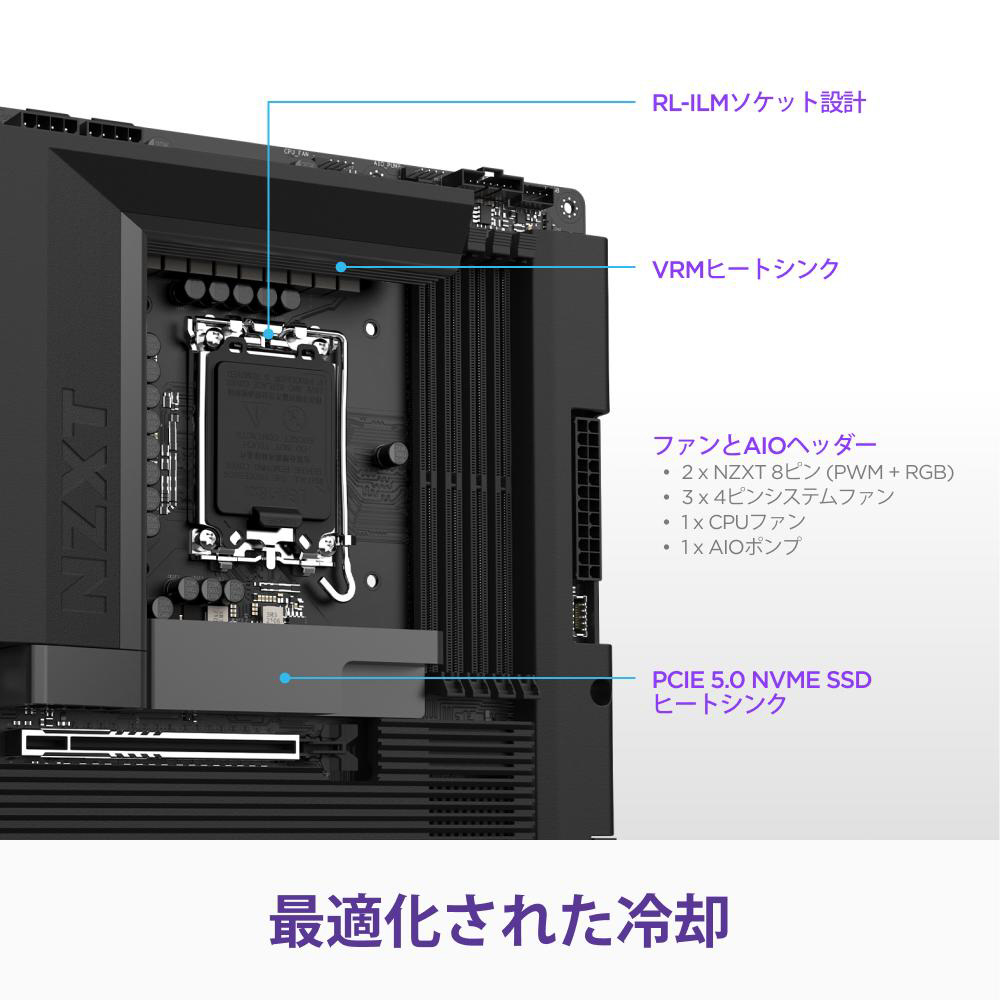 NZXT N7 Z890は、最新のIntel Core Ultra プロセッサ(シリーズ2)に対応した、機能美あふれるATXマザーボードです。