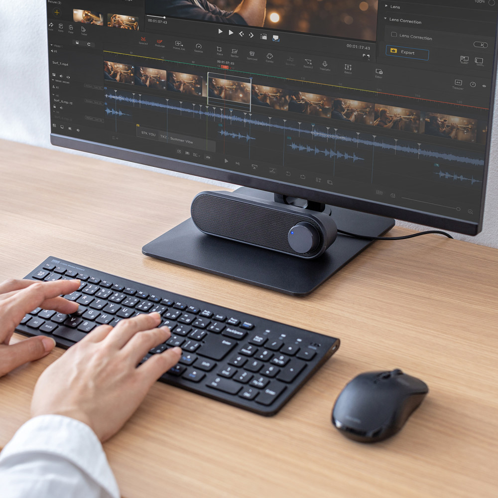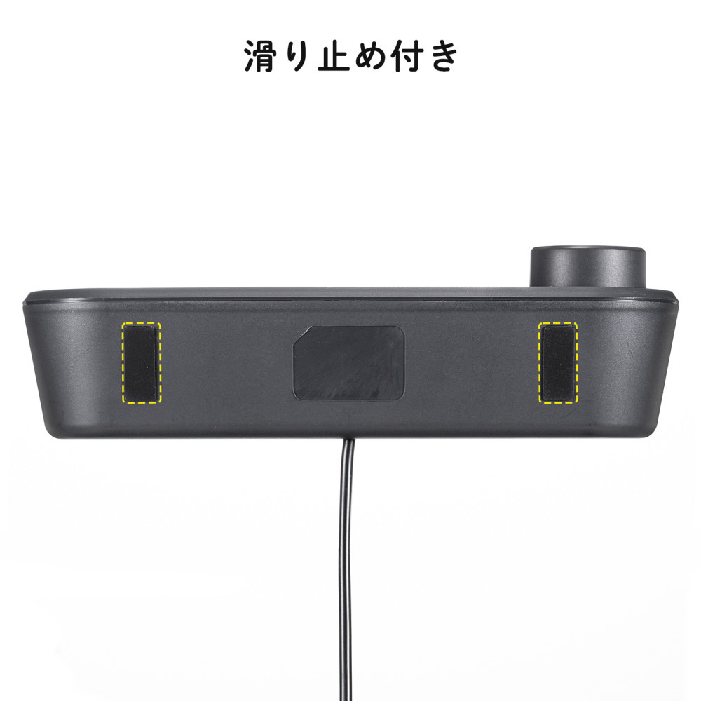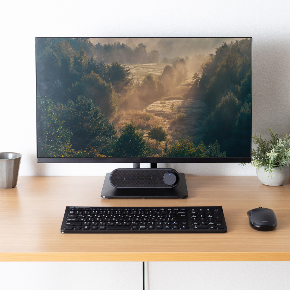 ■横置き型のスリムデザインで、モニター前やデスク下にすっきり設置できます。