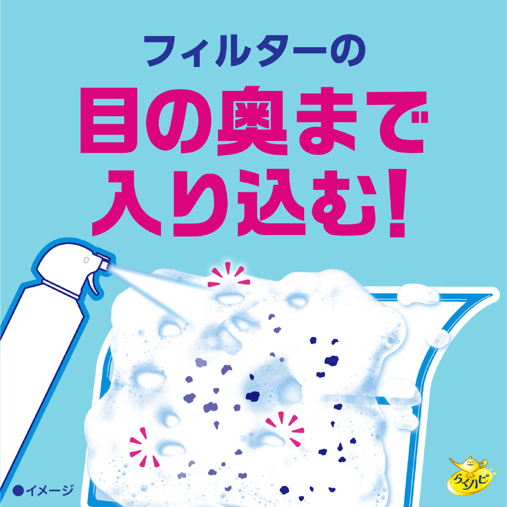 ●はじける泡がフィルターの目の奥まで入り込み、こびりついた油分を含む汚れを浮かせてすっきり洗浄(※汚れがひどい場合は、軽くこすり洗いしてください。)