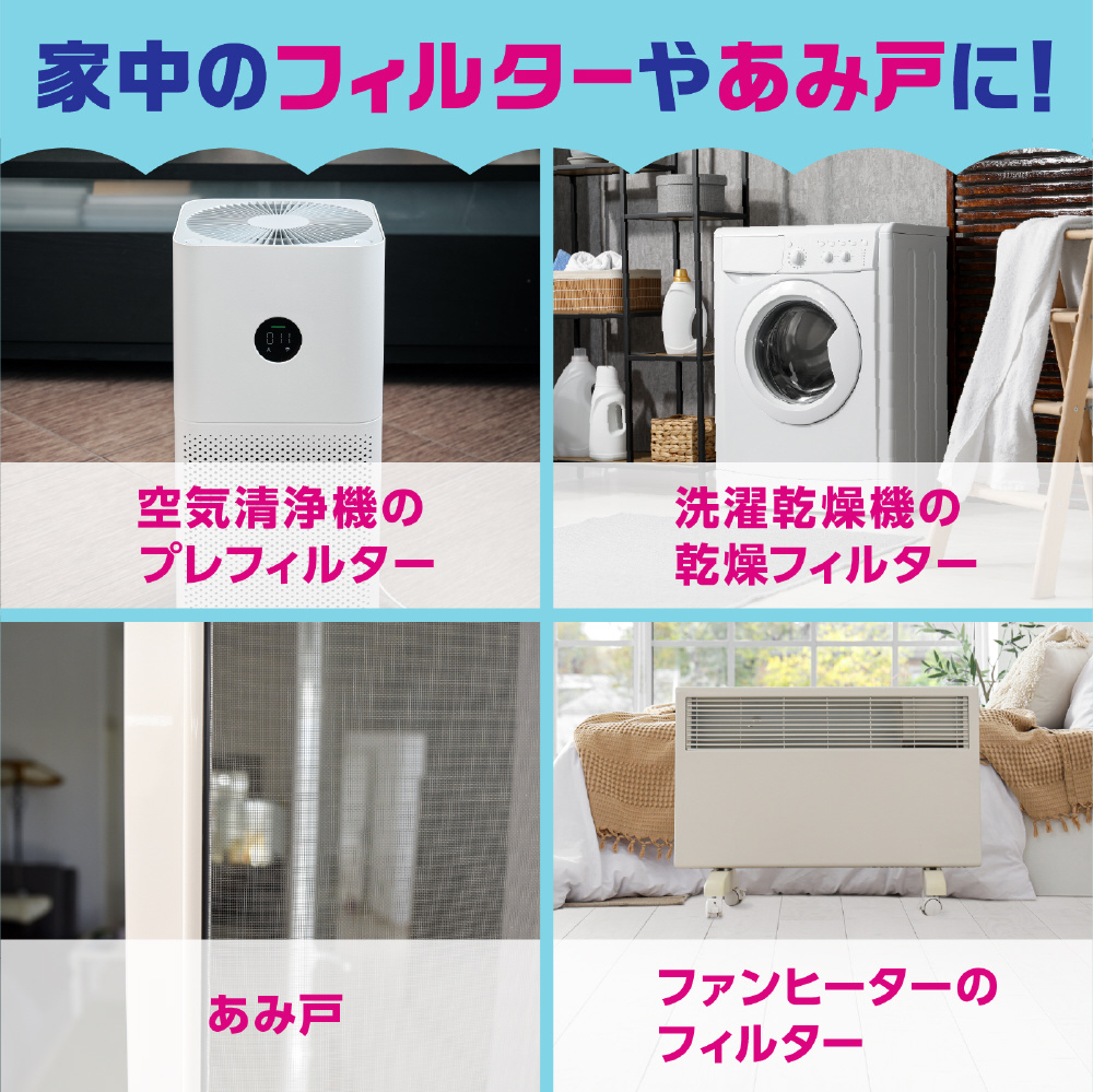 ●家中のフィルター(換気口のエアフィルター、洗濯乾燥機・浴室乾燥機の乾燥フィルター、空気清浄機のプレフィルター等)や網戸にも使える